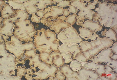 (2)氧化法。将试样检验面抛光,然后将抛光面朝上放入加热炉中,在860℃±10℃加热1h,然后淬入水中或盐水中,经磨制和浸蚀后便显示出由氧化物沿晶界分布的原奥氏体晶粒形貌。这种方法适用于碳含量为0.35%~0.60%的碳钢和合金钢。 (3)网状铁素体法。将碳含量不大于0.35%的试样在900℃±10℃、碳含量大于0.35%的试样在860℃±10℃加热30min,然后空冷或水冷,经磨制和浸蚀后沿原奥氏体晶界便显示出铁素体网。这种方法适用于碳含量为0.25%~0.60%的碳钢和碳含量为0.25%~0.50%的合金钢。 |