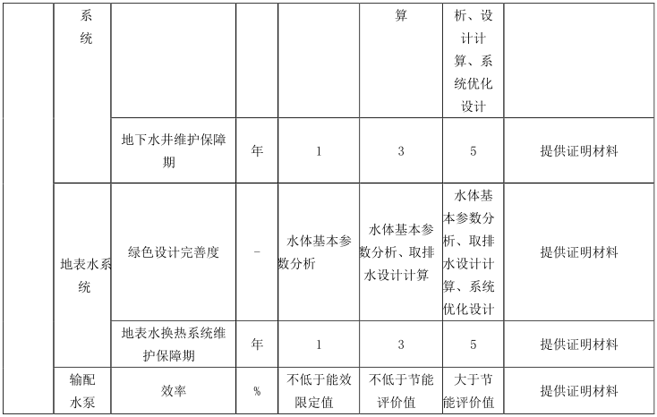 地源热泵系统评价指标包括资源属性指标、 能源属性指标、 环境属性指标和品质属性指标。 地热能交换系统的评价指标要求见表4. 2. 1-1, 水/地源热泵机组的评价指标要求见表4. 2. 1-2。