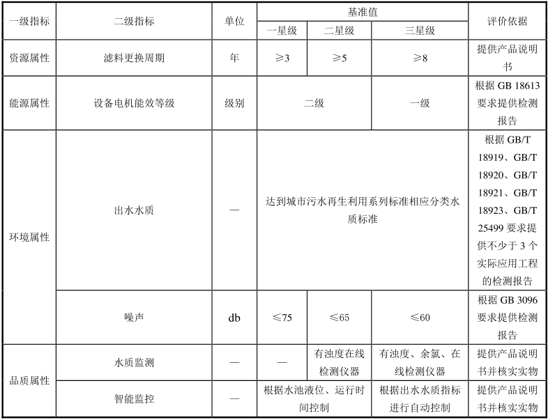 表 2 雨水处理设备评价指标要求(图:)